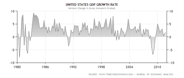 It is interesting to note that the 5% GDP growth rate is ambitious and I would’ve chosen a 3% growth rate based on the following graph which shows over recent history that is about what is expected.