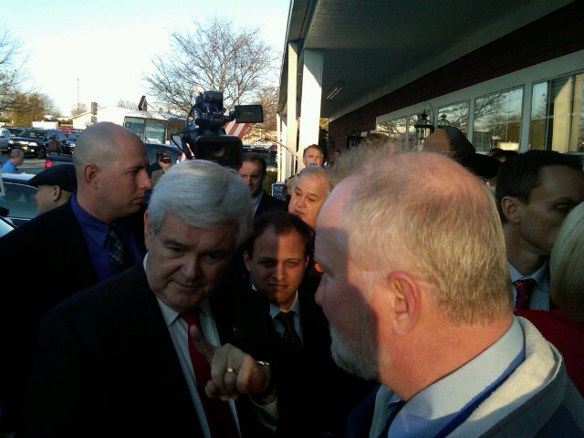 There was a gentleman (who was a Vietnam War veteran) in the receiving line next to me and he was asked by a member of the media why he was supporting Gingrich. He said he didn’t want Romney and liked the way Gingrich “put Juan Williams in his place” during the debate earlier in the week. I think Gingrich won many supporters during that exchange and this man was no exception.