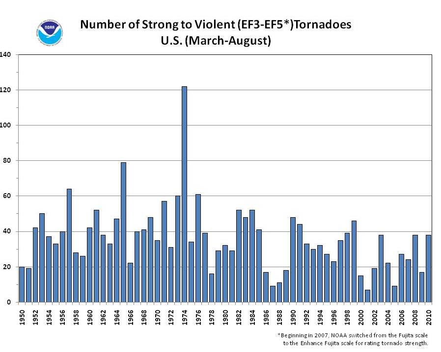 What about Tornadoes? Did the US see an increased amount of these deadly and damaging storms? Nope.