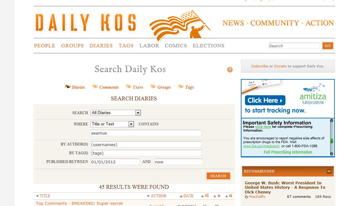 The Left expressed considerable outrage when it was revealed that Mitt Romney once travelled for 12 hours with his dog in a cage strapped to the roof of the car.  Oh how the Left hyperventilated over this and if you don’t believe me you can see this search of the word “Seamus” (the name of Romney’s dog) on the Daily Kos website which shows the term used 45 times in 2012.