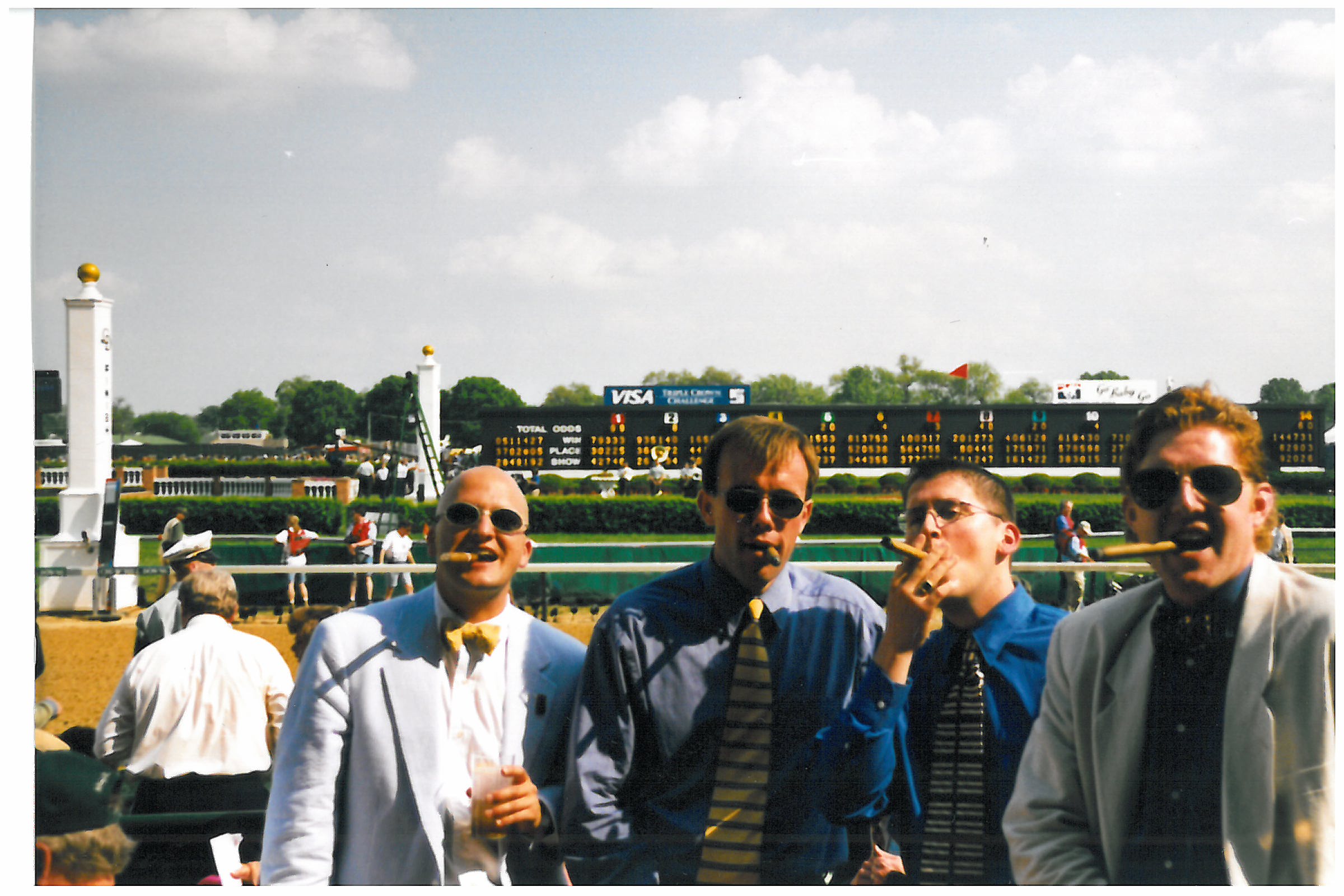 I’ll leave you with a few pictures of when we spent one Derby in a box on the finish line (I’m the bald guy).  I don’t know what Heaven will be like but it can’t be much different that sipping a Mint Julep, smoking a cigar and watching the Kentucky Derby from box seats on the finish line.
