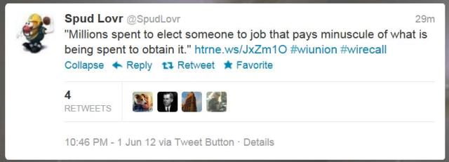 @SpudLovr and @unkybunky were some of the more prolific #Wiunion supporters on twitter and although they blocked me months ago, go check out their timelines for some laughs.