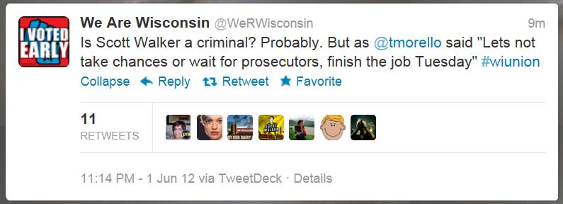 This person says that Governor Walker is “probably” a criminal.  This is typical of Leftists who are quick to judge without looking at the facts first.
