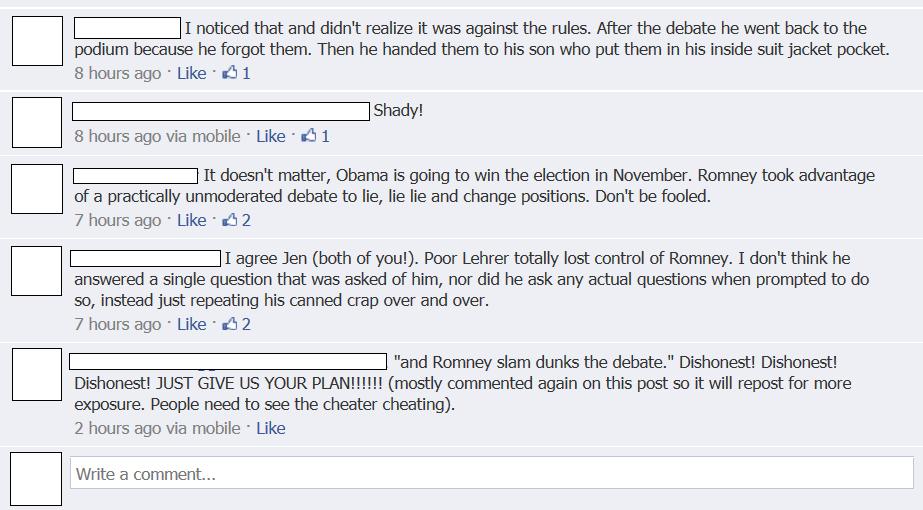 Here are some screen caps from the Facebook comments (names and pictures have been erased):