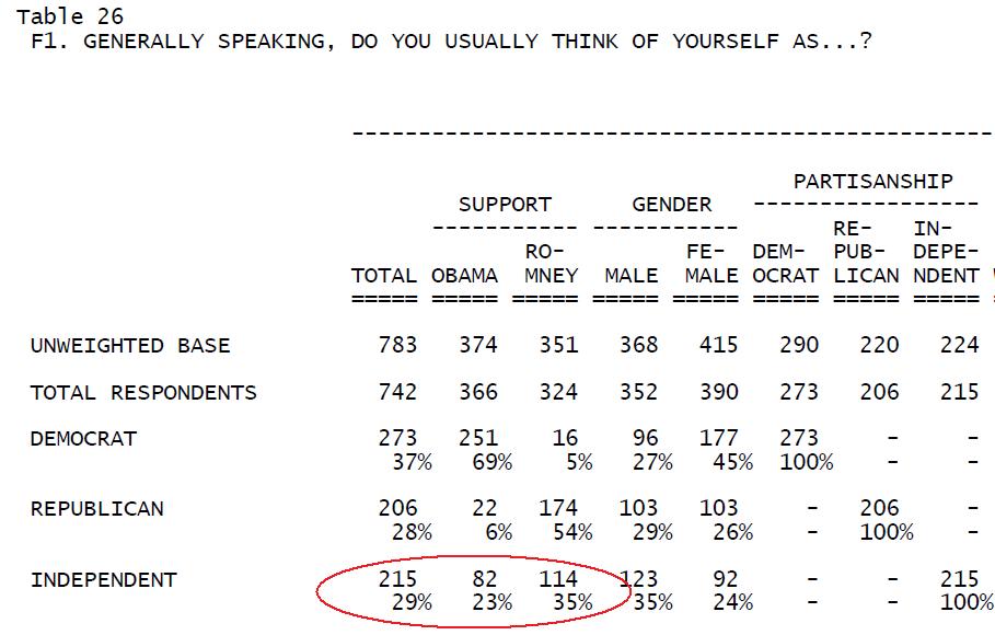 Ohio Independents are favoring Romney over Obama 35% to 23% and this is huge in a swing state.