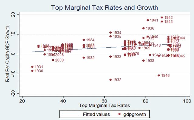 “While we cannot say that there is a robust significant positive relationship between tax rates and growth”