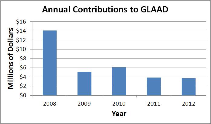 glaad contributionsUnless things have changed in 2013 (which I doubt they have), GLAAD is on the ropes both financially and in the court of public opinion so now is the time to step on their throats.