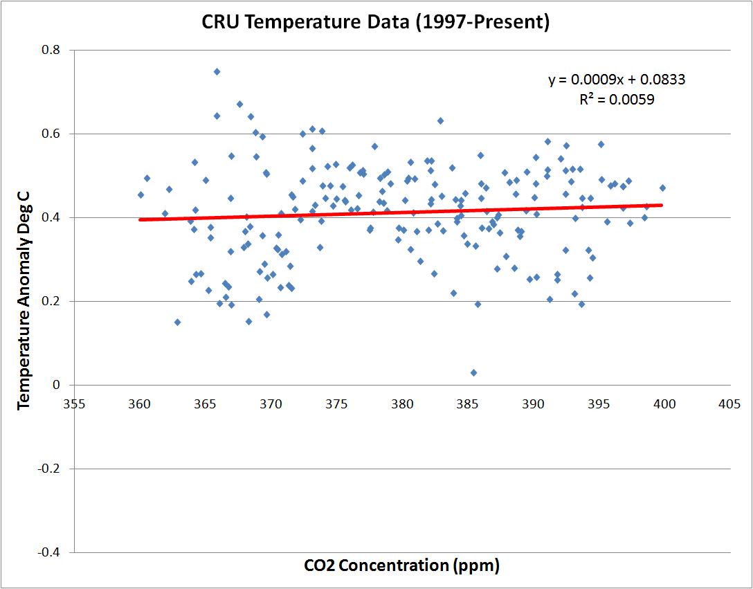 crucru vs co2uahuah vs co2rssrss vs co2All these temperature graphs look pretty flat, don’t they?  And since this is a time period of exactly 17 years, then we can use the conclusions of the AGW cult peer reviewed paper to confidently state that increased atmospheric CO2 concentrations have NOT raised global temperatures.