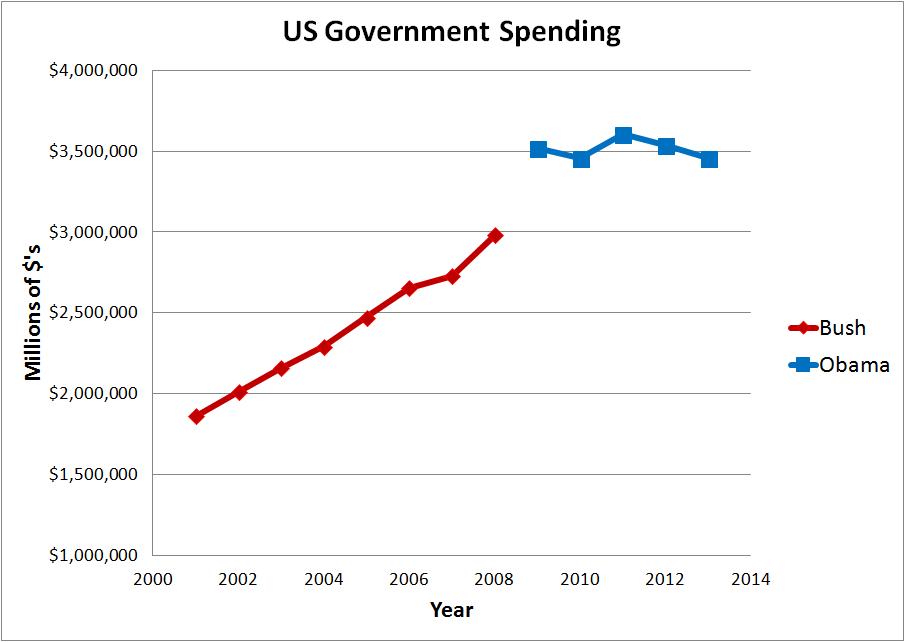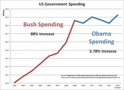The 2009 Stimulus added $787 billion to the government outlays and that cannot be attributed to Bush but instead to Obama and the Democrat controlled Congress who passed it. (And as a sidebar, you can go here to see how the 2009 Stimulus was a colossal failure.)