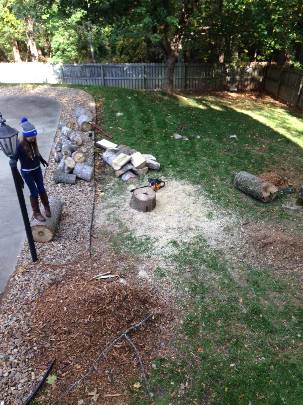 We had a large dead tree in our backyard and after contracting a professional to cut it down I requested they leave the main trunk so I could use a chain saw and axe to bust it up into firewood. What’s more Paleolithic than cutting up a tree to get firewood?