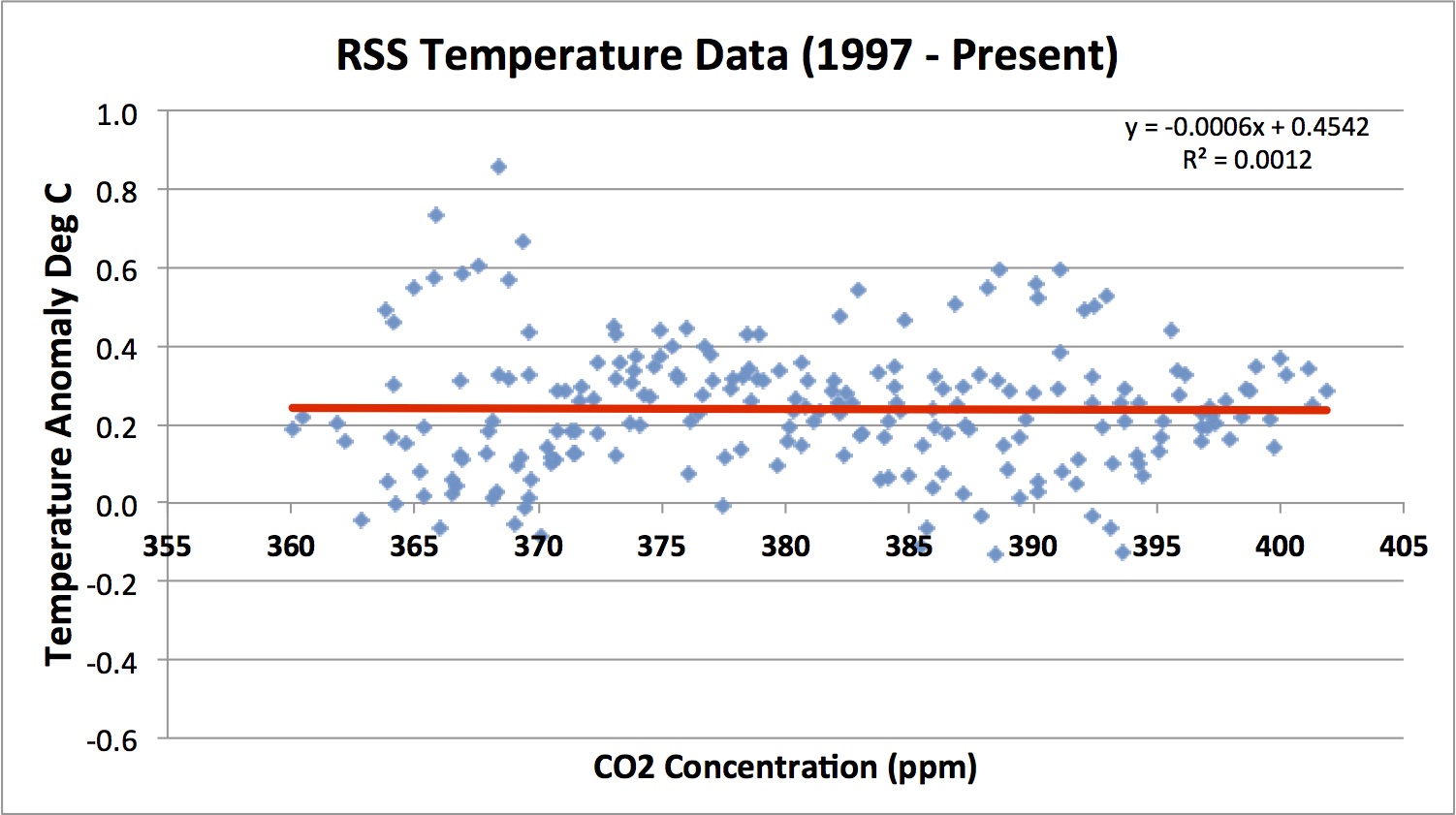 satellite temperatures And by all means, don’t worry about the fact that there is zero correlation between atmospheric CO2 concentrations and global temperature anomalies: