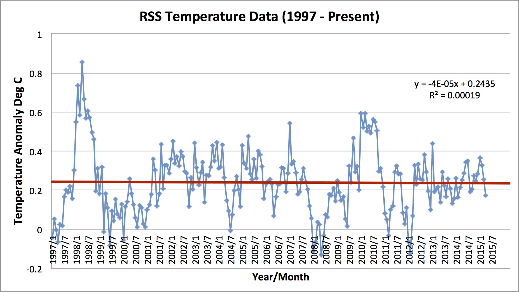 They have been very upset over one little inconvenient truth – Even though we’ve been doing exactly what the AGW cult told us NOT to do (pump more CO2 into the atmosphere), temperatures (as measured by satellites) have been flat and there has been no correlation between temperatures and atmospheric CO2 for the past 18 years.